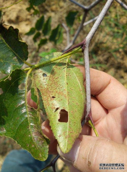 茎上感染了主要的棕色斑点,顶部有深黑色斑点。